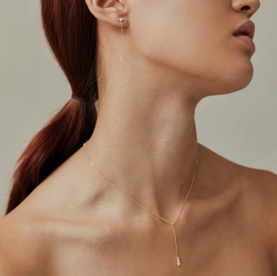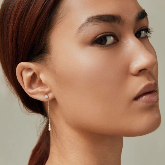 Diamond Drop Chain Earring Enhancer Ear Stud Chain Jacket Front Back Ear Jacket 14k 18k Solid Gold Sparkling Lab Grown Diamond Chain Earring