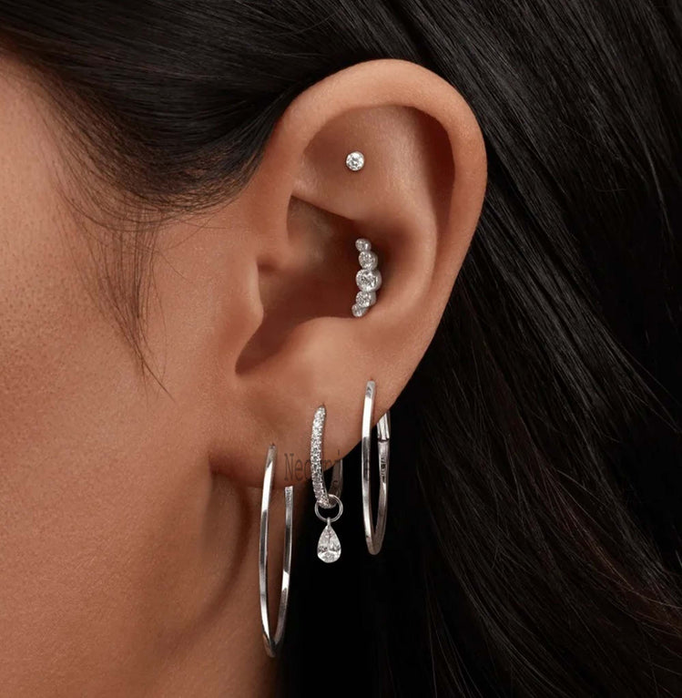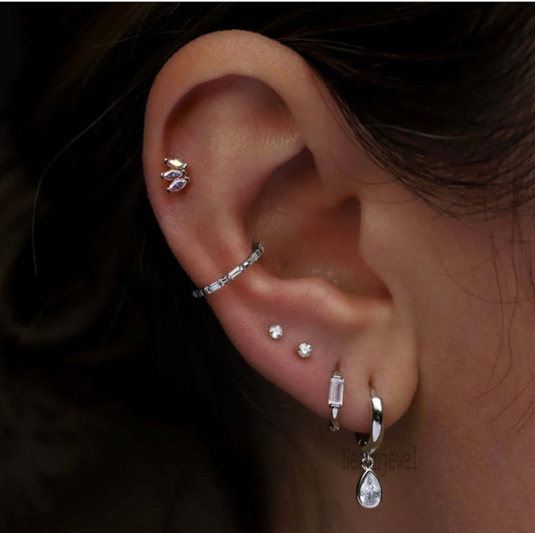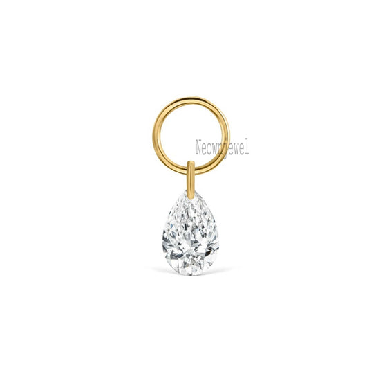 Pear Floating Diamond Charm Single Pear Diamond Earrings Pear Floating Diamond Drop Piercing