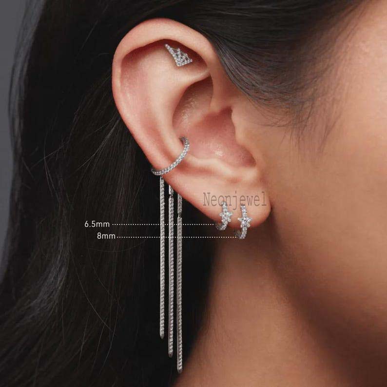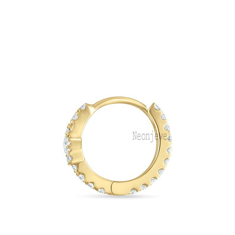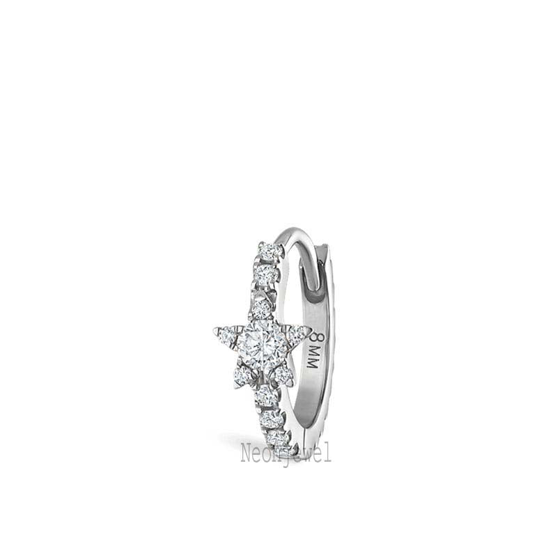 Diamond Star Eternity Hoop Earring 14K Solid Gold Lab Grown Diamond Star Eternity Clicker Piercing For Woman Sparkling Star Floral Hoop Gift
