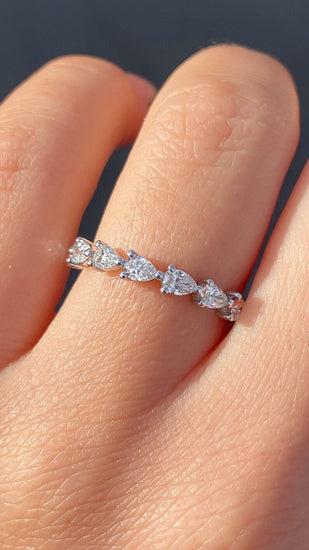 Full Eternity Wedding Band Pear Moissanite Band Minimalist Stacking Ring Anniversary Gift Ring Vintage Wedding Bandย