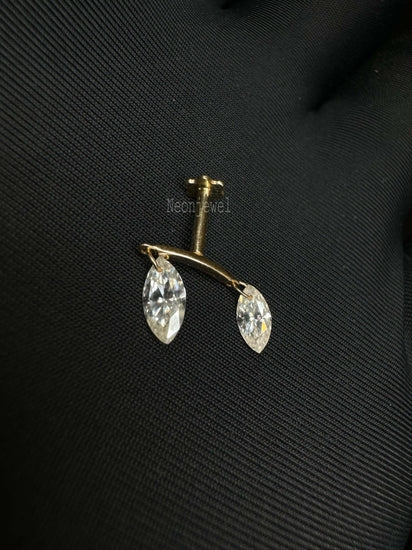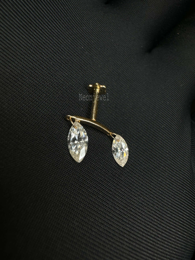 Margaret Floating Double Marquise Diamond Drape Threaded Stud Earring 14k Solid Yellow Gold Studย